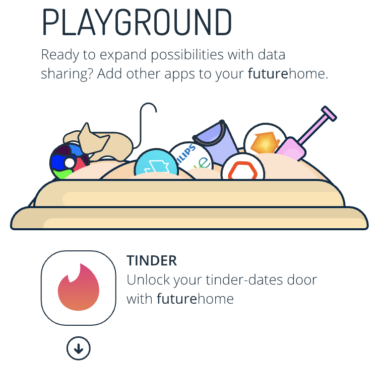 For å gjøre Futurehome så aktuelt som mulig for våre brukere lanserer vi endelig integrasjon med datingappen Tinder. Som landets første smarthusløsning med direkte kobling til Tinder er målet å gjøre dating enklere og mer praktisk for alle parter. Dette vil i praksis si at du kan gi Tinder-matcher tilgang til smartlåsen din slik at dating og smarthusløsningen samhandler så sømløs som mulig. Tinder-integrasjonen finner du i Playground i Futurehome appen.